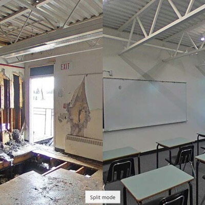 ChallengeWhile the main school building was unaffected, the portables sustained extensive structural damage along with significant fire, smoke, soot, char, and ash contamination. |